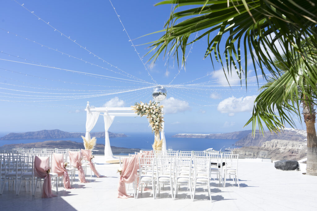 We offer DJing and lighting services for weddings in Santorini.